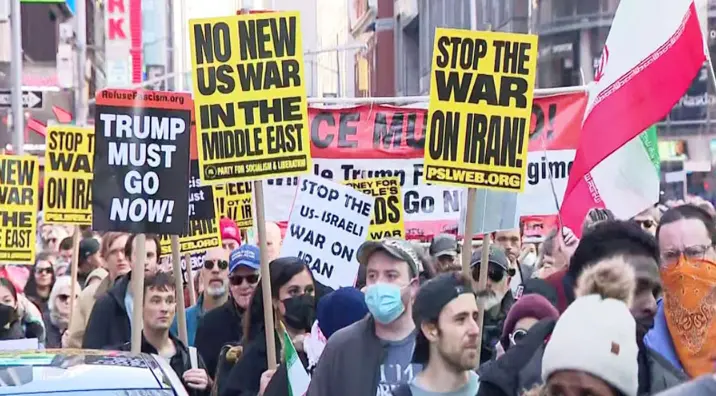 বিক্ষোভকারীরা ‘ইরান থেকে হাত সরাও’ এবং ‘মধ্যপ্রাচ্যে নতুন কোনো যুদ্ধ নয়’ সম্বলিত প্ল্যাকার্ড হাতে ট্রাম্প প্রশাসনের যুদ্ধবাজ নীতির তীব্র নিন্দা জানান। নিউইয়র্কের ম্যানহাটনে অবস্থিত ইউনিয়ন স্কয়ারে সমবেত কয়েকশ বিক্ষোভকারী স্লোগান দেন যে, বর্তমান বিশ্বে সবচেয়ে বড় হুমকি হলো ডোনাল্ড ট্রাম্প এবং মার্কিন প্রশাসন। তারা দাবি করেন, জনগণের ট্যাক্সের টাকা যুদ্ধের পেছনে ব্যয় না করে জনকল্যাণমূলক কাজে ব্যবহার করা হোক।