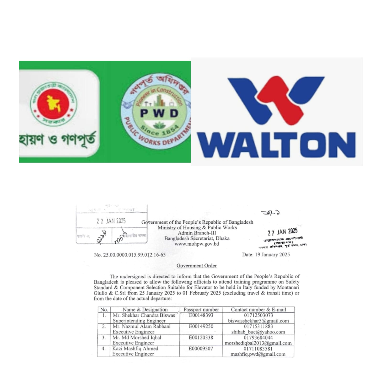 এদিকে শিল্পখাতে একচেটিয়া প্রভাব বাড়ানোর লক্ষ্যে ওয়ালটন সম্প্রতি গণপূর্ত অধিদপ্তরের লিফট সরবরাহ খাতে প্রবেশের চেষ্টা শুরু করে। দুদক সূত্রে জানা যায়, ওয়ালটনের অর্থায়নে গণপূর্ত অধিদপ্তরের চারজন নির্বাহী প্রকৌশলী ও একজন তত্ত্বাবধায়ক প্রকৌশলী ইউরোপ সফরে গেছেন। সফরের নাম দেওয়া হয়েছিল “ইটালি ট্যুর”, কিন্তু এর পেছনের মূল উদ্দেশ্য ছিল ওয়ালটনের লিফটকে বিদেশি মানের সমতুল্য ঘোষণা করানো, যাতে ভবিষ্যতে সরকারি টেন্ডারগুলো একচেটিয়াভাবে তাদের হাতে আসে। এমনকি একজন প্রকৌশলী সফরে নিজের স্ত্রীকেও সঙ্গে নিয়েছেন।