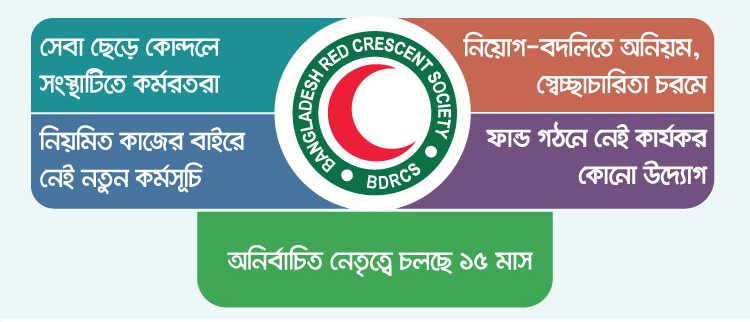 দীর্ঘদিন ধরে বাংলাদেশ রেড ক্রিসেন্ট সোসাইটি নানা অনিয়ম ও অভ্যন্তরীণ কোন্দলে জর্জরিত। বর্তমান চেয়ারম্যান দায়িত্ব নেওয়ার পর থেকেই তার বিরুদ্ধে একতরফা সিদ্ধান্ত, দুর্নীতিতে অভিযুক্ত কর্মকর্তাদের পুনর্বহাল, এবং রাজনৈতিক প্রভাব খাটানোর অভিযোগ ওঠে। এসব নিয়ে কর্মচারী ও স্বেচ্ছাসেবকরা আন্দোলনও করেছেন, তবে এখন বোর্ডের অভ্যন্তরে ভাঙন আরও স্পষ্ট হয়ে উঠেছে। ফলে দেশের অন্যতম মানবিক এই প্রতিষ্ঠানটি কার্যত স্থবির অবস্থায় পড়ে গেছে।